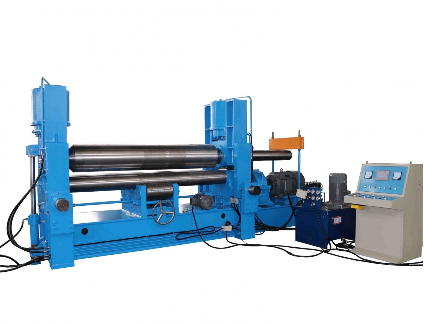 W11SNC-35x2500 萬(wàn)能式三輥卷板機(jī)是一種雙夾板彎板機(jī)。 上輥為液壓驅(qū)動(dòng)。 上輥可水平和垂直調(diào)節(jié),兩個(gè)下輥是固定的。 所有合金鋼輥均經(jīng)過(guò)感應(yīng)淬火和熱處理。 經(jīng)過(guò)感應(yīng)淬火處理后,所有的輥都將被研磨和拋光。