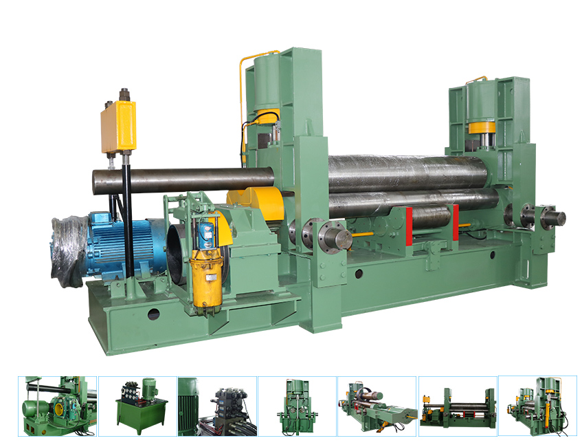 W11SNC萬能式三輥卷板機是一種雙夾板彎板機。 上輥為液壓驅動。 上輥可水平和垂直調節,兩個下輥是固定的。 所有合金鋼輥均經過感應淬火和熱處理。 經過感應淬火處理后,所有的輥都將被研磨和拋光。