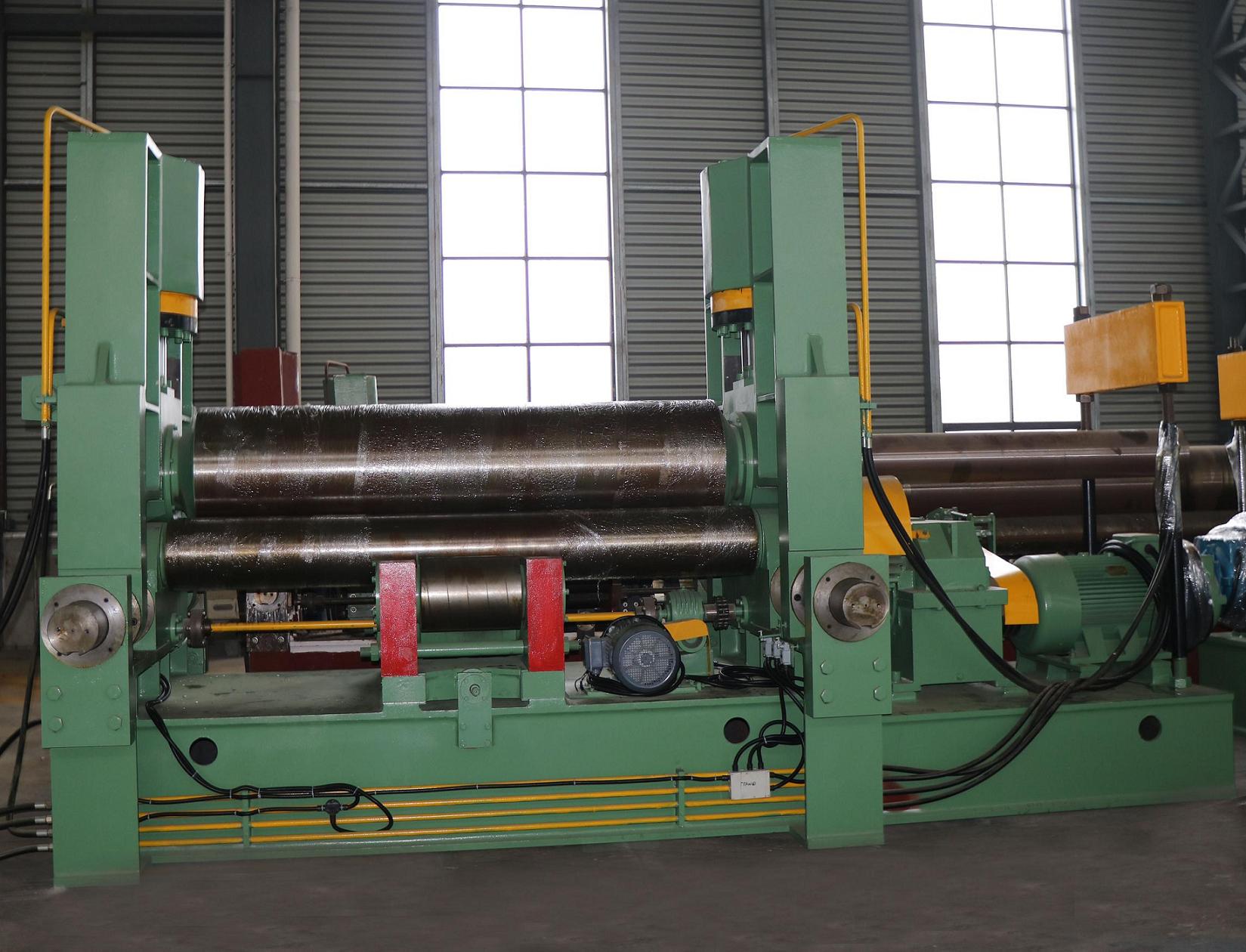 W11SNC萬能式三輥卷板機是一種雙夾板彎板機。 上輥為液壓驅(qū)動。 上輥可水平和垂直調(diào)節(jié),兩個下輥是固定的。 所有合金鋼輥均經(jīng)過感應(yīng)淬火和熱處理。 經(jīng)過感應(yīng)淬火處理后,所有的輥都將被研磨和拋光。
